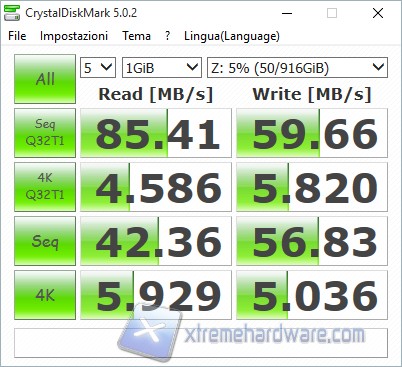 I risultati cambiano e prendono una forma più “rassicurante” controllando i numeri di CrystalDisk Mark.