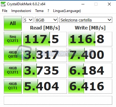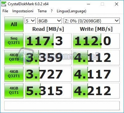 Di seguito duqnmue riportiamo i grafici inerenti alle velocità di trasferimento ed ai test sintetici effettuati